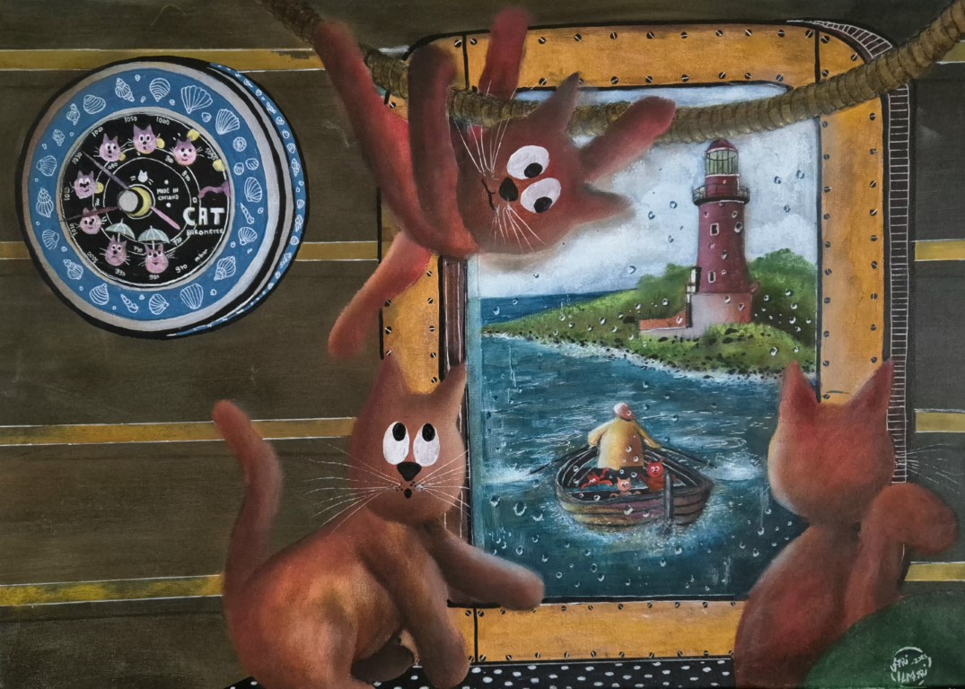 Kevät 2026. Vuoronvaihto (Lighthouse Keeper Shift). Canvas, kiilapuu. 50x70 cm. mustat reunukset.